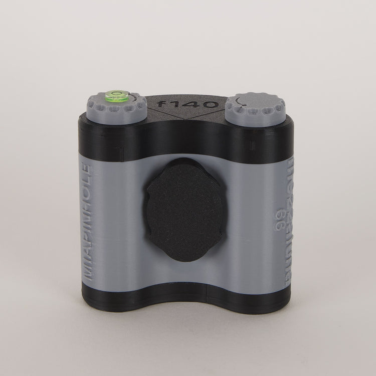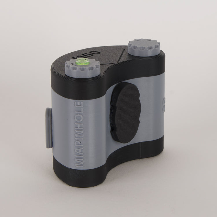 Equipped with a standard threaded hole for tripod mounting, a frame counting system with a sliding door, a magnetic cover that doubles as the shutter, and a F/140 pinhole (look closely because it's small), this camera offers a very hands-on photography experience.