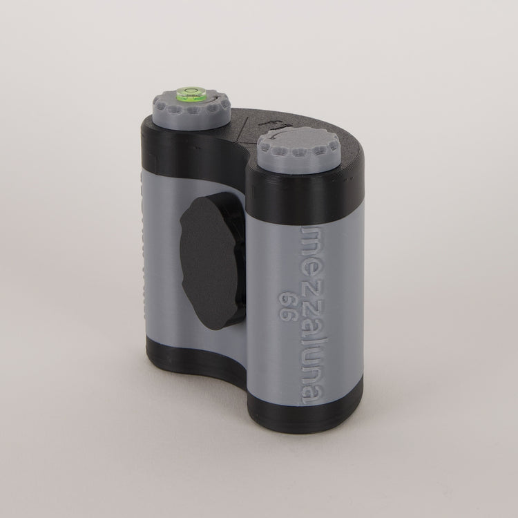 All our MezzaLuna pinhole cameras use standard 120 film. The frame size for this camera is 6x6, which gives the model its name: the “66.” For comparison, the “69” model features a wider 6x9 frame and will get a few fewer shots per roll of film.