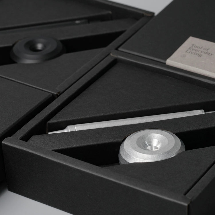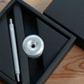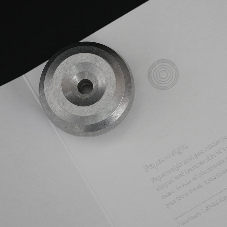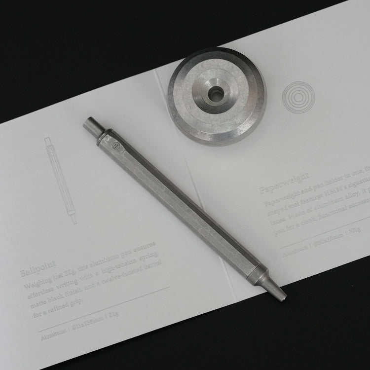 Aluminum-crafted for timeless writing - A sleek writing set for Aluminum lovers. 5cm hollow holder fits HMM pens and more, doubles as a sundial-like paperweight at 101g.