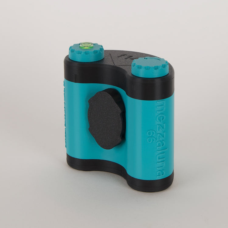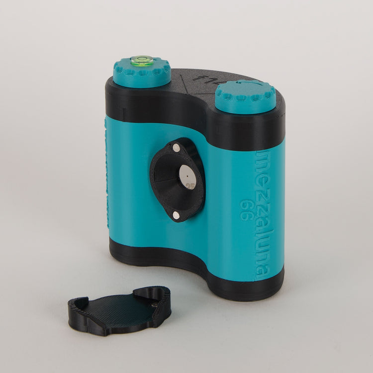 All our MezzaLuna pinhole cameras use standard 120 film. The frame size for this camera is 6x6, which gives the model its name: the “66.” For comparison, the “69” model features a wider 6x9 frame and will get a few fewer shots per roll of film.
