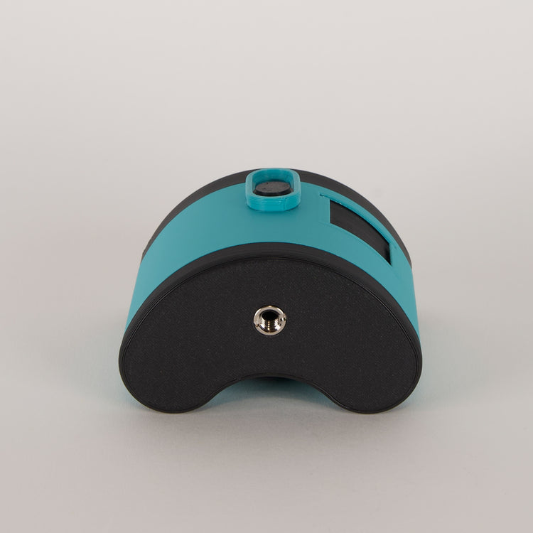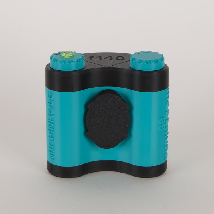Equipped with a standard threaded hole for tripod mounting, a frame counting system with a sliding door, a magnetic cover that doubles as the shutter, and a F/140 pinhole (look closely because it's small), this camera offers a very hands-on photography experience.