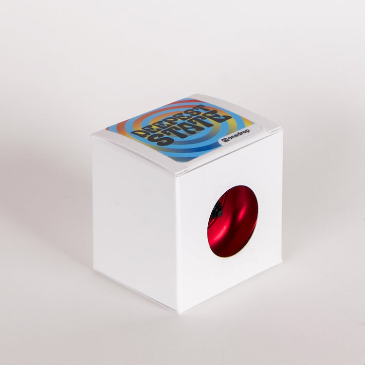 Each yo-yo is CNC-milled from a solid billet of aluminum in Eugene, Oregon, and anodized with One Drop’s exclusive Pyramatte finish, giving it a smooth feel without being overly shiny. It also features a large stainless-steel bearing in the axle for some impressive spin.