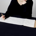 48 perforated, accordion sheets, elastic strap to keep the notebook closed, available in four muted color-ways. Materials: Pages - Virgin pulp paper, perforated. Cover - More than 40% waste paper pulp content.