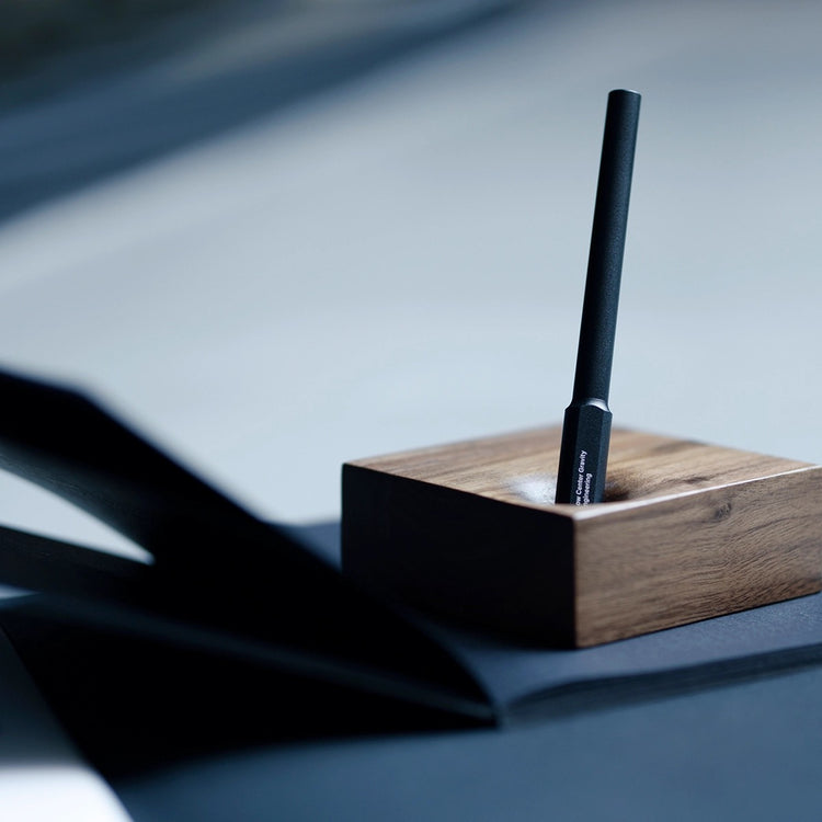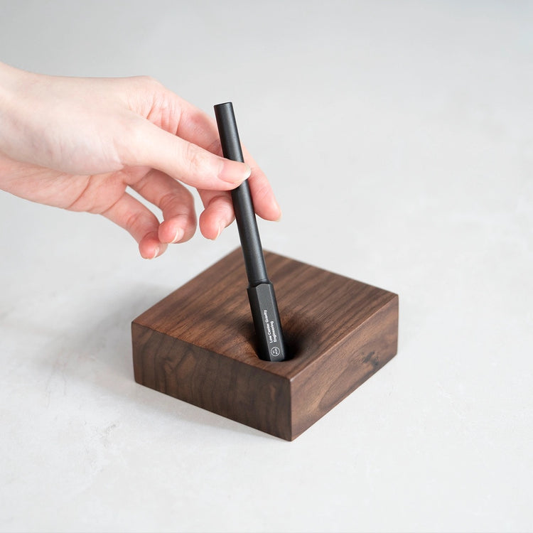 The walnut wood base adds to the ambience whether you are at home or in office. The solid walnut wood with a curvy, refined hole acts as a pen holder, and can accommodate any regular pen models. Every time you pick up a pen or put it back down, it feels like your brilliant inspiration has dripped through a rock, creating a Zen-like desktop landscape.